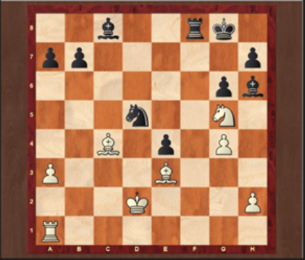 Peter had analysed Be6, Nxe6 Bxe3+ but wasn’t sure as it was too complicated but thought it would be good for White. As it happens the engine finds the remarkable variation Be6, Nxe6 Nxe3 !! and black wins by ignoring the threat to the rook and a discovered check from the Bishop on c4, by creating his own discovered check! A discovered check from white by moving the knight, can be met by Nxc4 and a discovered check from black.